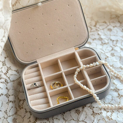Smykkeskrin i firkantet i farven beige.